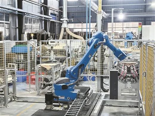 全自动机械臂沿轨道将成品准确转运至指定区域。记者 黄海健 摄“