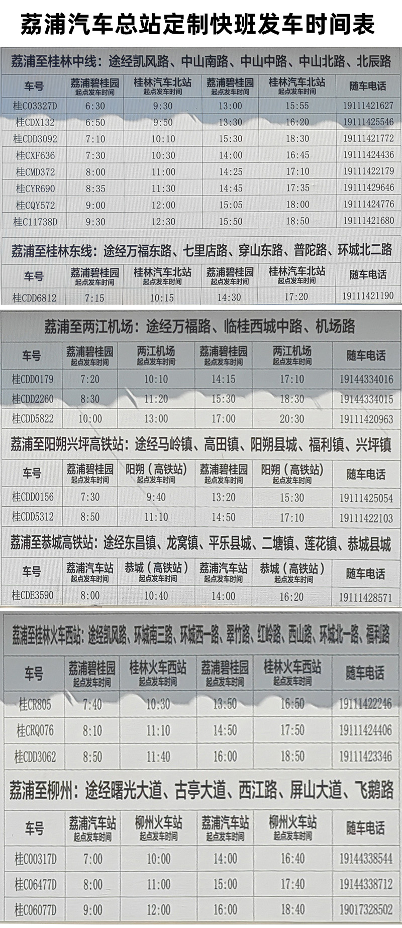 荔浦客运站、定制车发车时间表,2025年12月12日更新