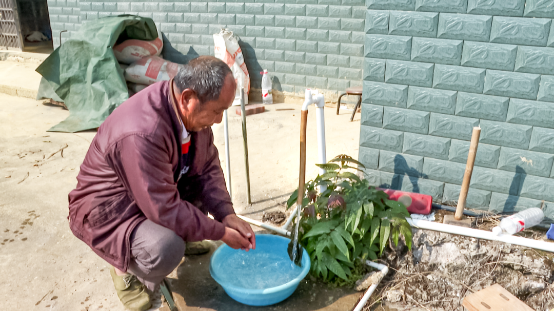 以前每到冬天干旱就要到邻村接水,费时又费力。现在政府帮我们免费打井、铺管,自来水接到家,用上了放心水!村里还推选了“看水人”负责日常维护,相信我们能管好、用好。