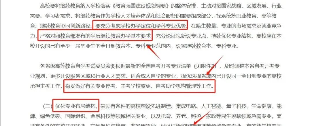 2025年秋季学期前已注册入学的函授、业余、网络教育学生继续按原政策执行。要做好专业备案工作衔接,学习形式从“函授”“业余”变更为“非脱产”的专业不计入新增专业,此前关于医学类、外语类、艺术类等专业设置管理政策原则上继续适用。这一改革趋势要求同学们在选择报考院校和专业时更加谨慎,以免因专业取消或院校减少而受到影响。