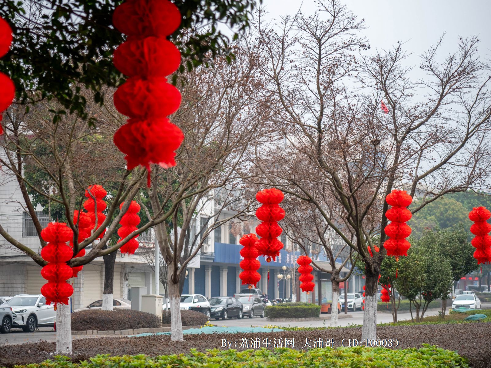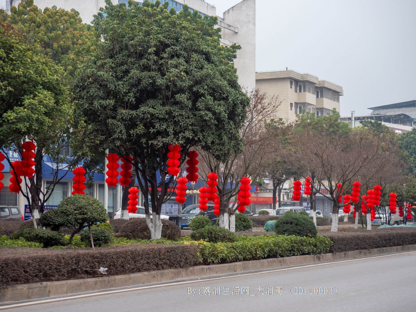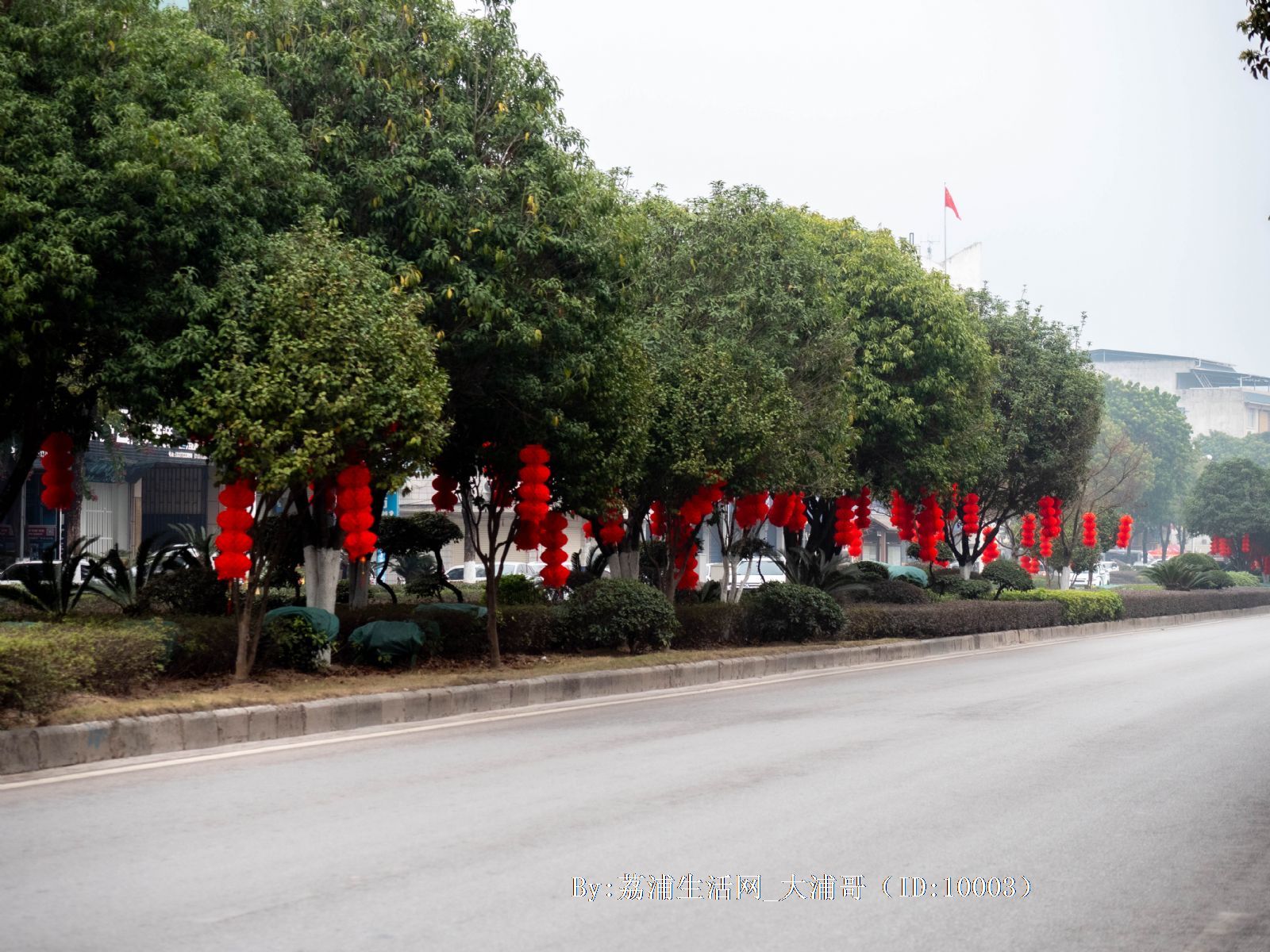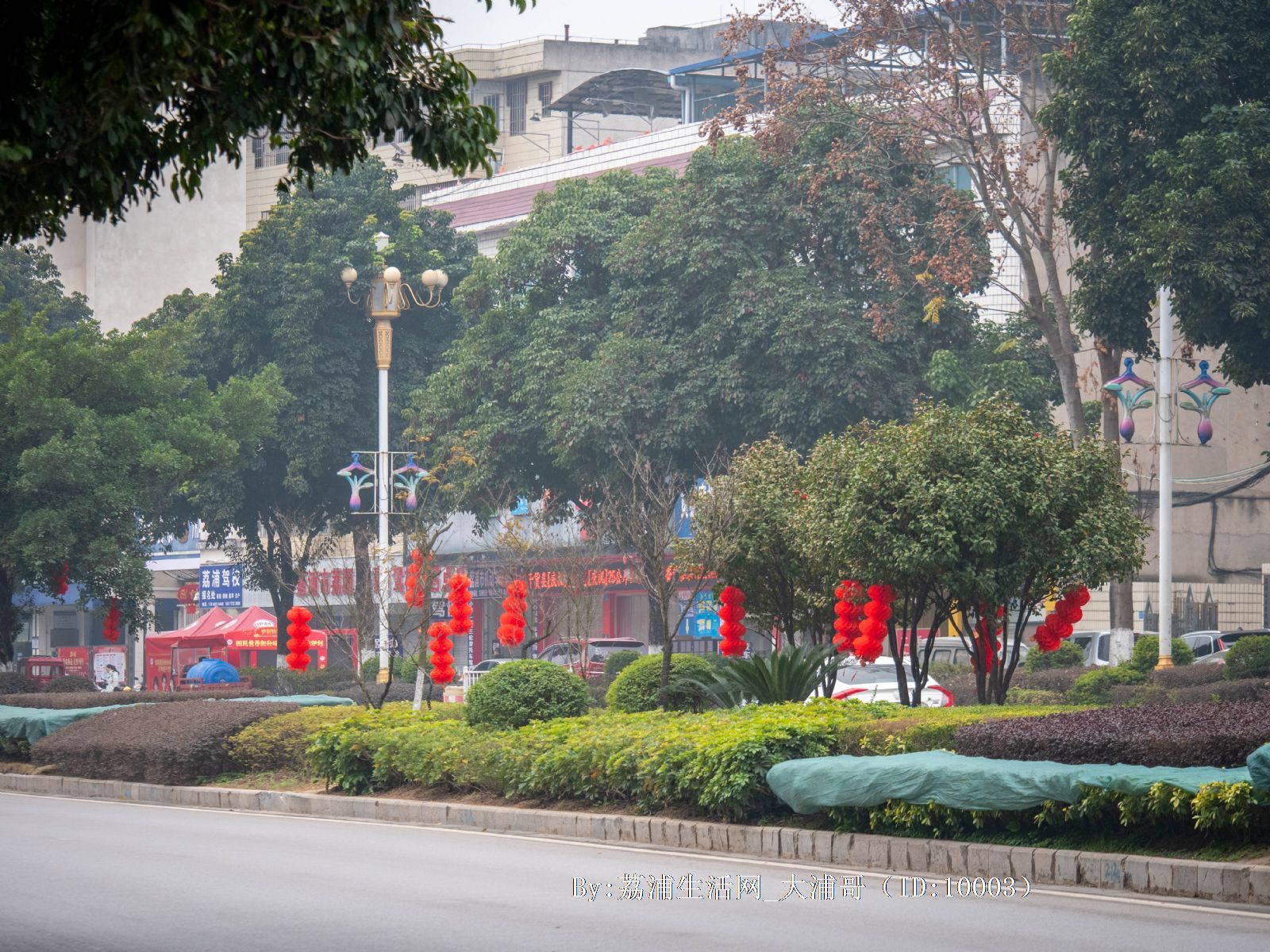 荔浦街道开始挂红灯笼了